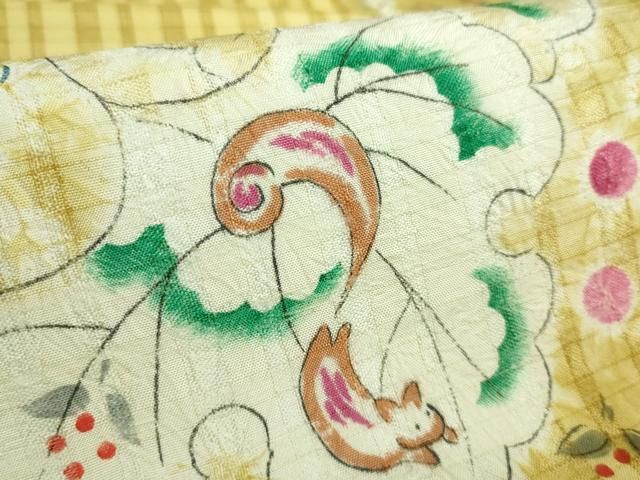平和屋本店 型絵染染色家 鈴木紀絵 九寸名古屋帯 手描き 絞り 舞花文 リス DZAB0686kh5 GLOBALQUALITYIMPORTS_COM
