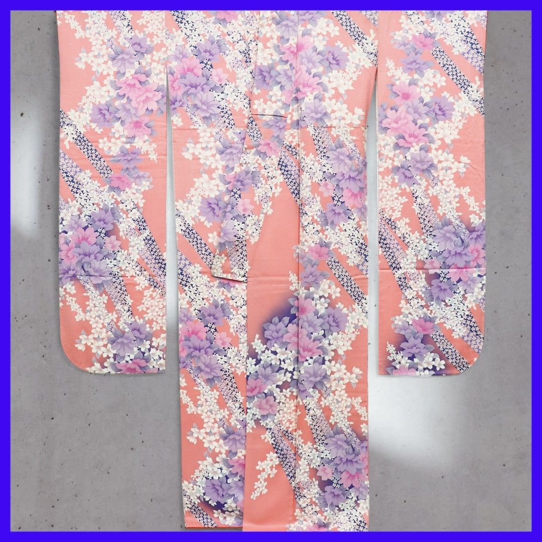 振袖 着物 赤 金彩 金彩網目模様 花柄 身丈174.5cm 裄丈67cm 正絹 成人式 T3650