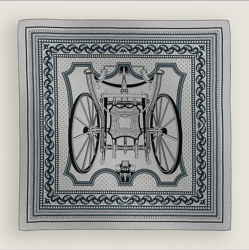 Hermès エルメス Châle 140 Les Roues de Phaéton カレジュアン140 四輪馬車の車輪 カシミア70 シルク30 gris chiné ardoise clair Black GLOBALQUALITYIMPORTS_COM