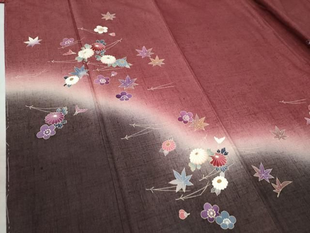 付け下げ 刺繍 スワトウ刺繍 椿 菊 梅 萩 着物 092w d