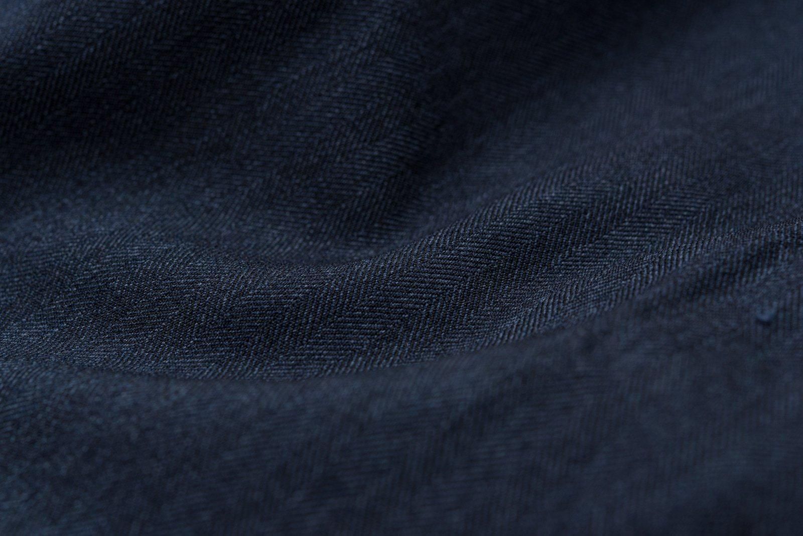 ネイビーカラーにヘリンボーン風の地模様が入ったちょっとメンズライクな生地で格好良い一枚。