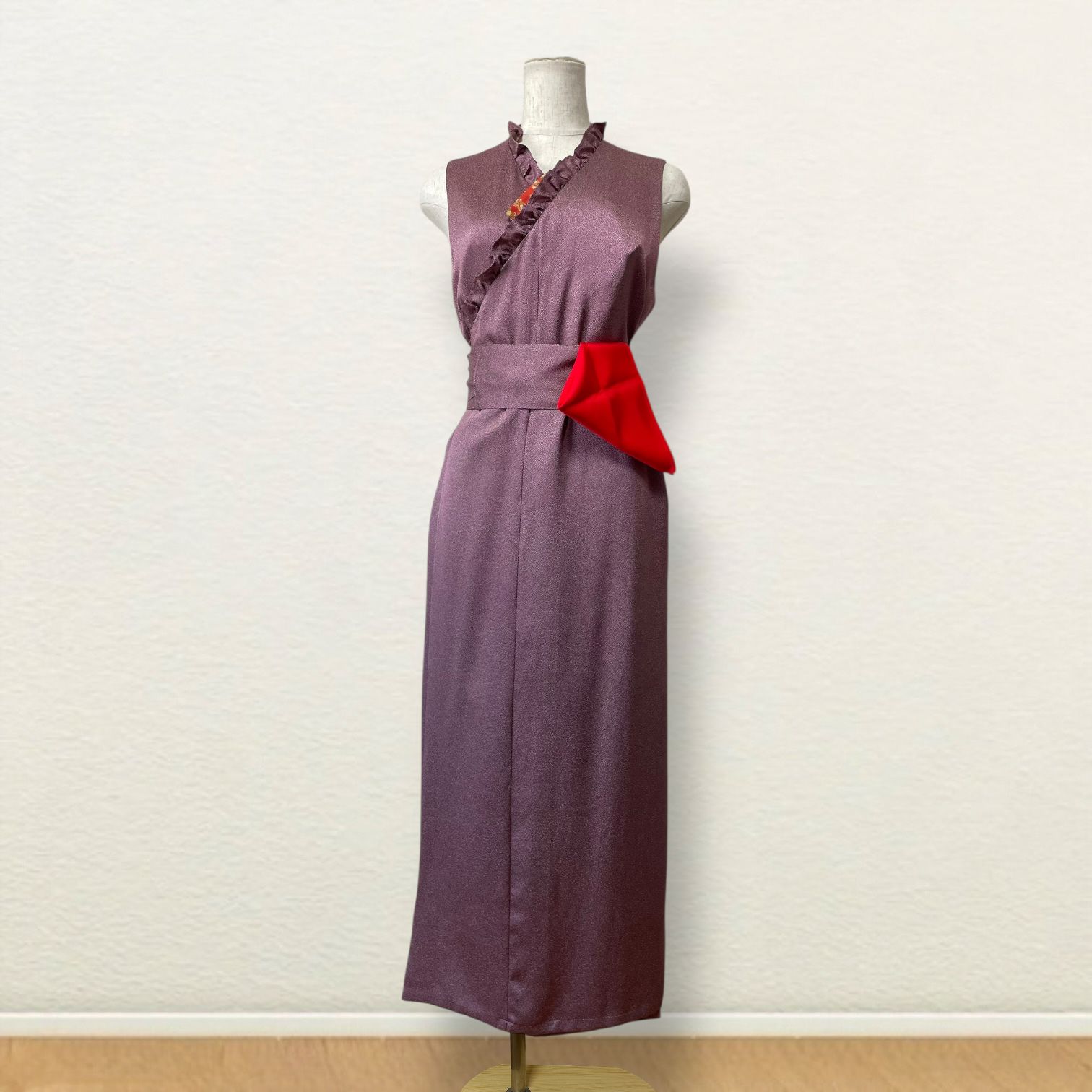 Newデザイン ︎江戸小紋 サッシュベルト付き Kanataの茶道ドレス 落ち着いた暗めの赤が大人な雰囲気 鮫小紋のお着物で作った 茶道お稽古着 手提げ袋付 逆勝手兼用 GLOBALQUALITYIMPORTS_COM