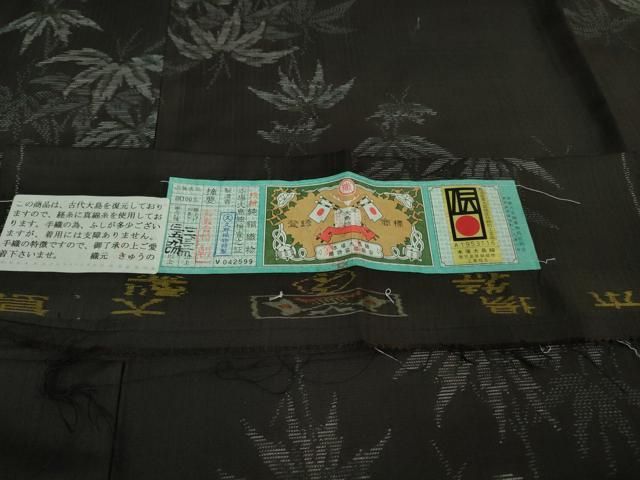 別誂 本場大島紬 くぼた 古代染色純泥染 正絹 旗印 躾糸付き