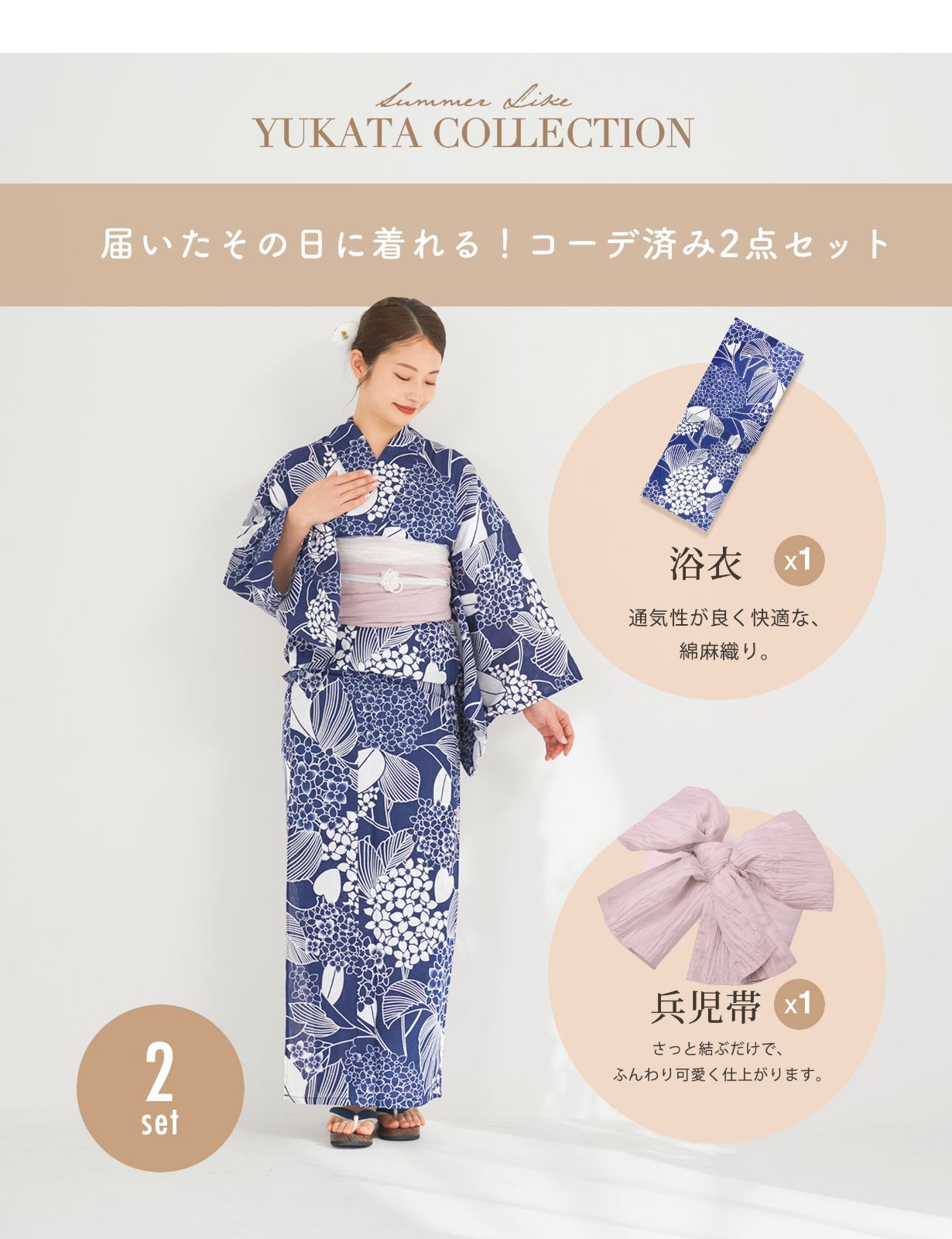綿麻 浴衣 帯付き 2点セット 紺 フリーサイズ レディース No.9の検索結果