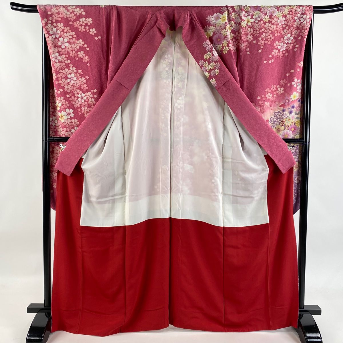 振袖 身丈174.5cm 裄丈69cm L 袷 牡丹 桜 銀通し 金彩 赤 正絹