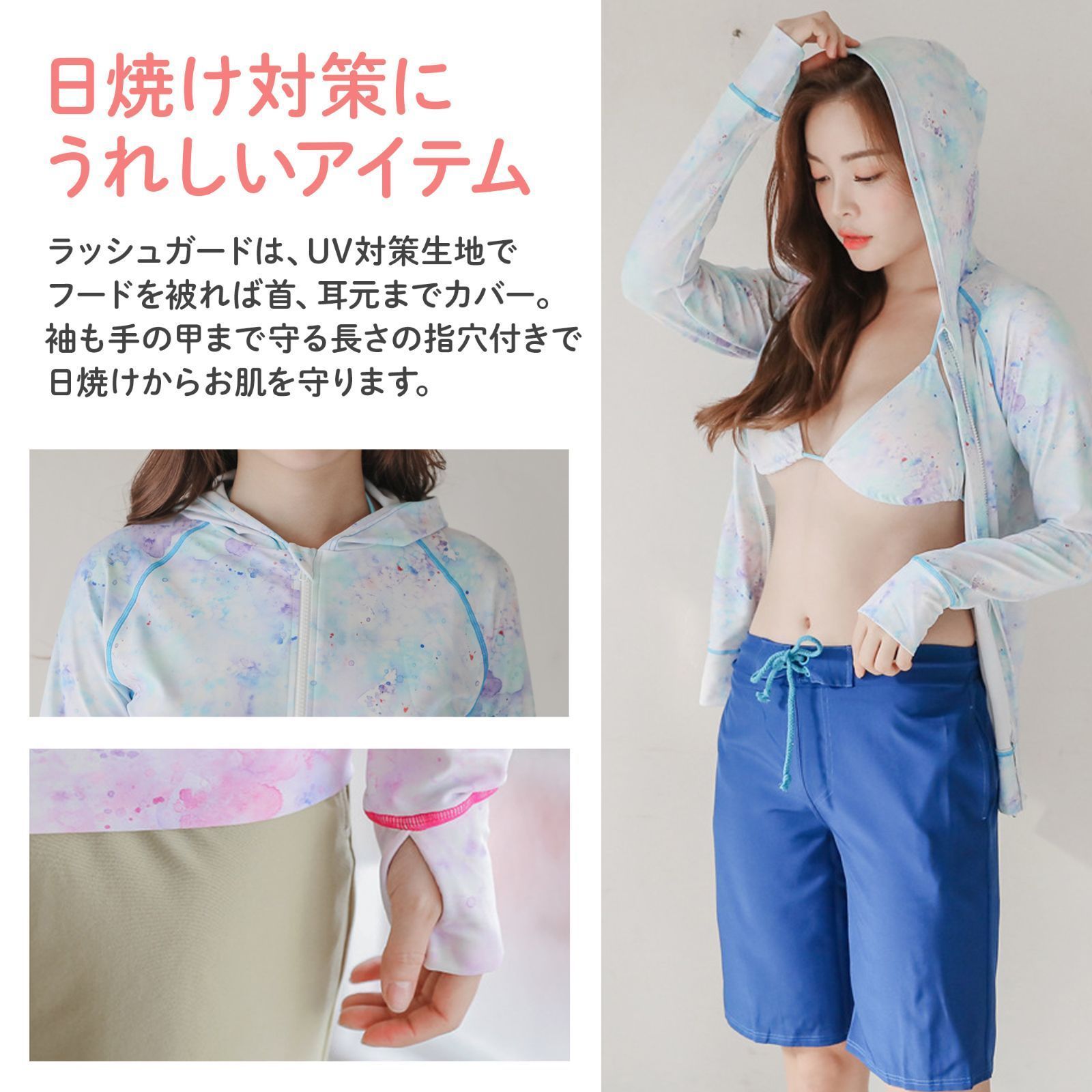 水着 レディース ラッシュガード 体型カバー ビキニ 上下セット 長袖ラッシュパーカー ショートパンツ 4点セット ママ水着 長袖 日焼け対策 UVカット aikai03 GLOBALQUALITYIMPORTS_COM