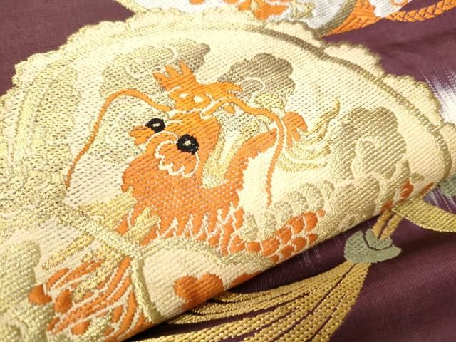 平和屋着物 夏物 アンティーク 大正ロマン 九寸名古屋帯 唐織 宝尽くし龍文 正絹 DAAY8161cm