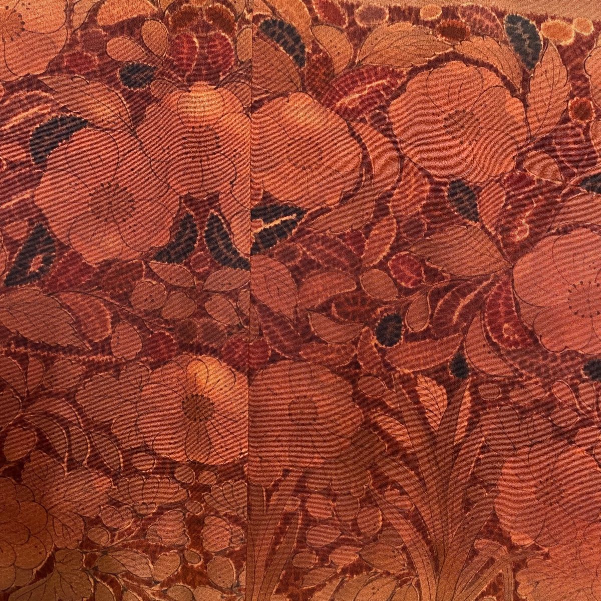 道行 身丈101.5cm 裄丈62.5cm S 和装コート 角衿 草花 ぼかし 赤茶 正絹の検索結果