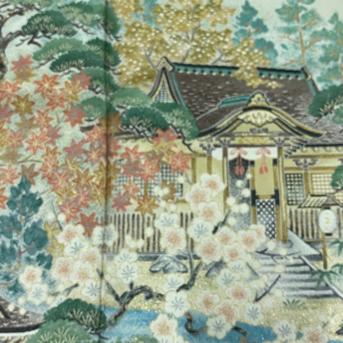 色留袖 身丈160cm 裄丈64cm M 袷 風景 松竹梅図 灰緑 正絹 秀品 一つ紋の検索結果