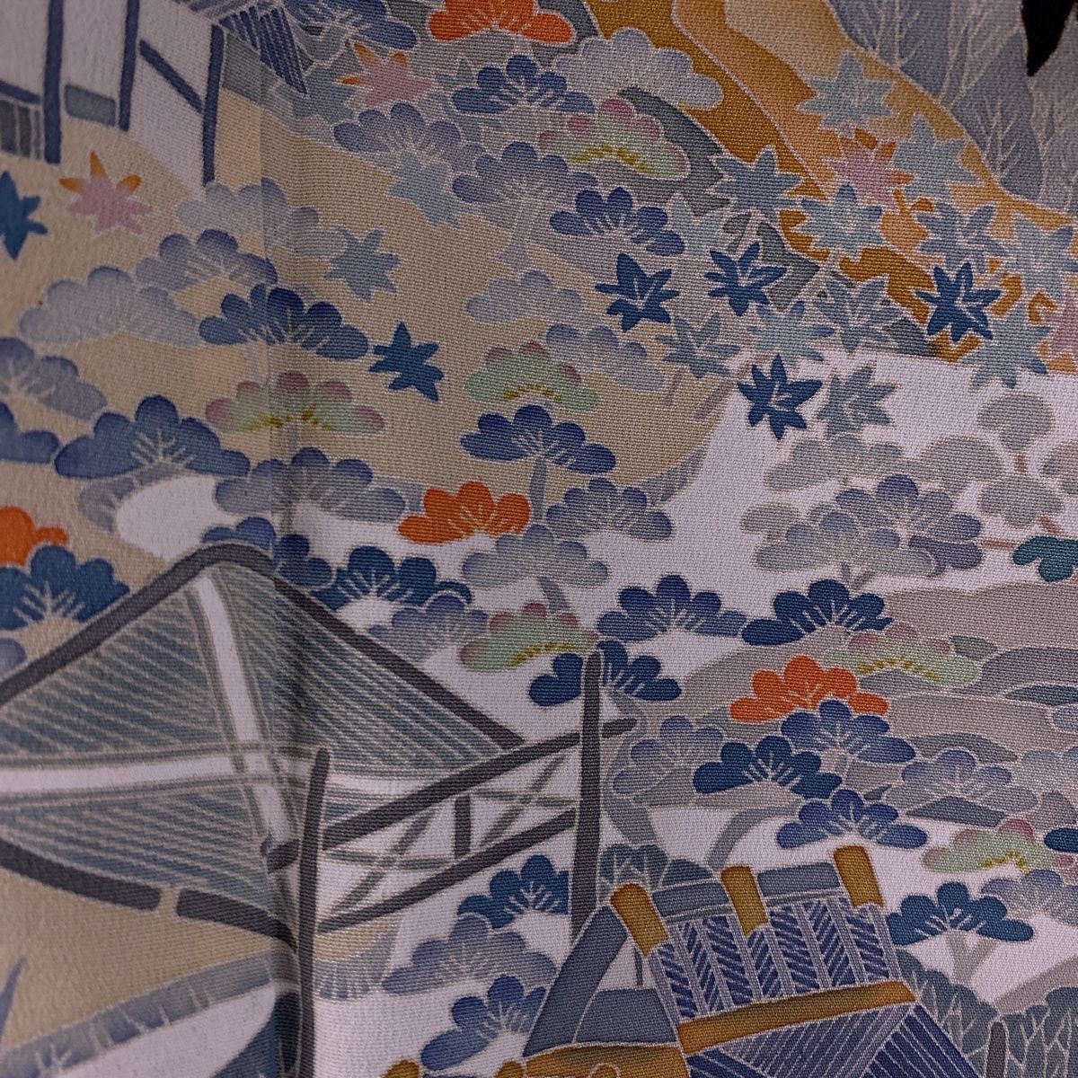 黒留袖 身丈168.5cm 裄丈67cm M 袷 百貫華峰 落款 風景 建物 黒 正絹の検索結果