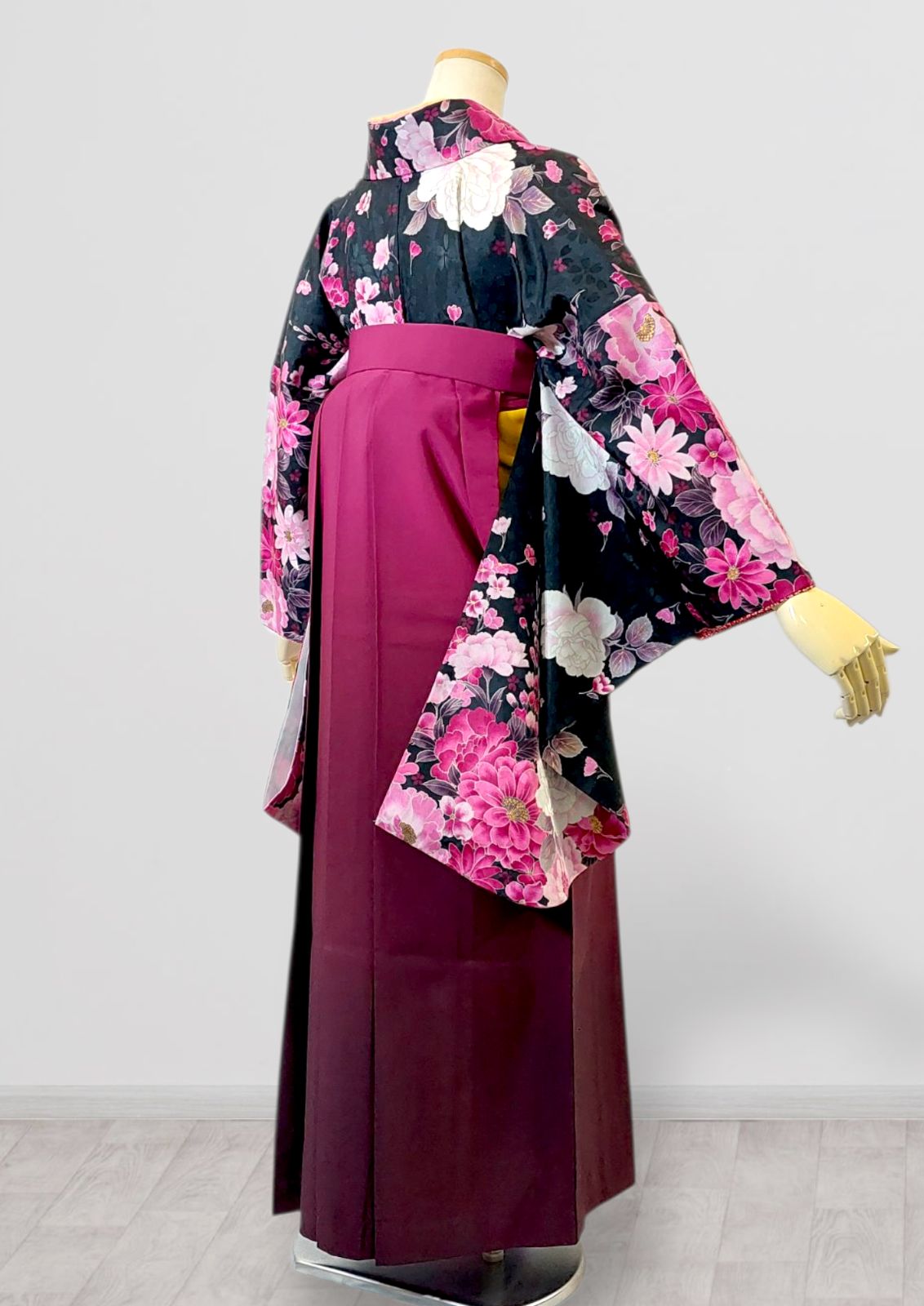 着物 袴 帯 3点セット セット販売 卒業式 に レディース袴セット 成人式 卒業式に 華やか和装 黒 赤 ピンク ぼかし 花柄 牡丹 95-13 GLOBALQUALITYIMPORTS_COM