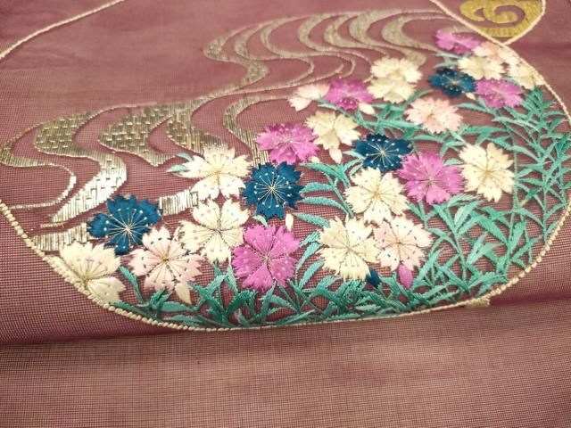 平和屋着物 夏物 アンティーク 大正ロマン 中国三大刺繍 相良刺繍 総刺繍 九寸名古屋帯 流水草花文 金銀糸 正絹 DAAY8135cm GLOBALQUALITYIMPORTS_COM