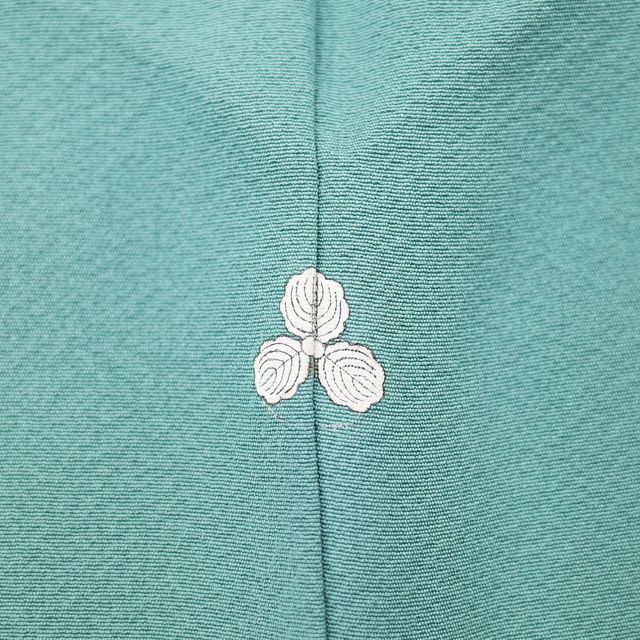すごい値 色無地 袷 着物 ターコイズ 青緑 無地 一ツ紋 三つ柏 セミフォーマル 品 仕立て上がり 身丈160 裄66 Mサイズ お茶会 販売 正絹 リサイクル 春 秋 冬 すごいね nek00446 GLOBALQUALITYIMPORTS_COM