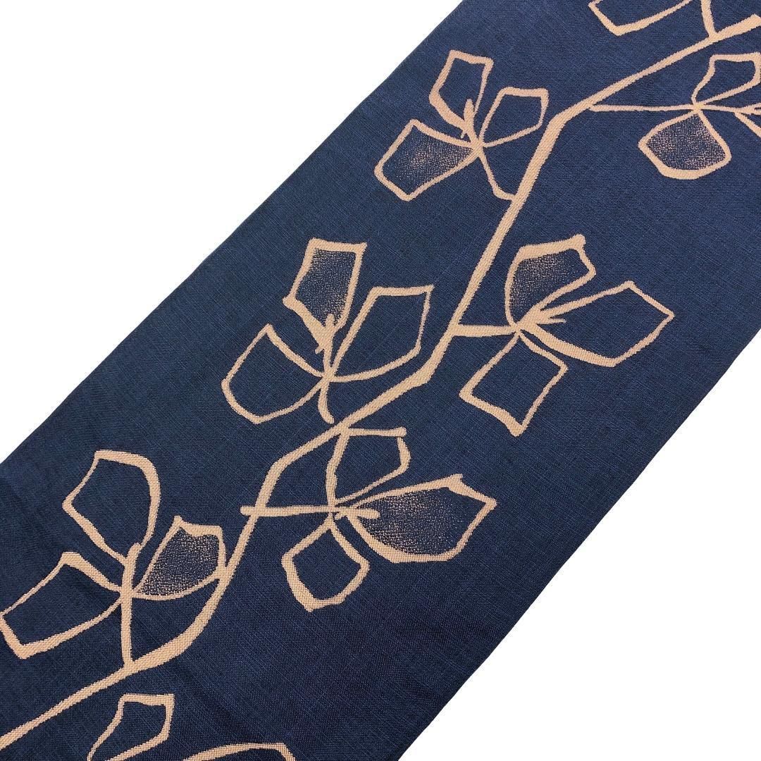 袋帯 紬 抽象葉模様 濃藍色 O-5484の検索結果