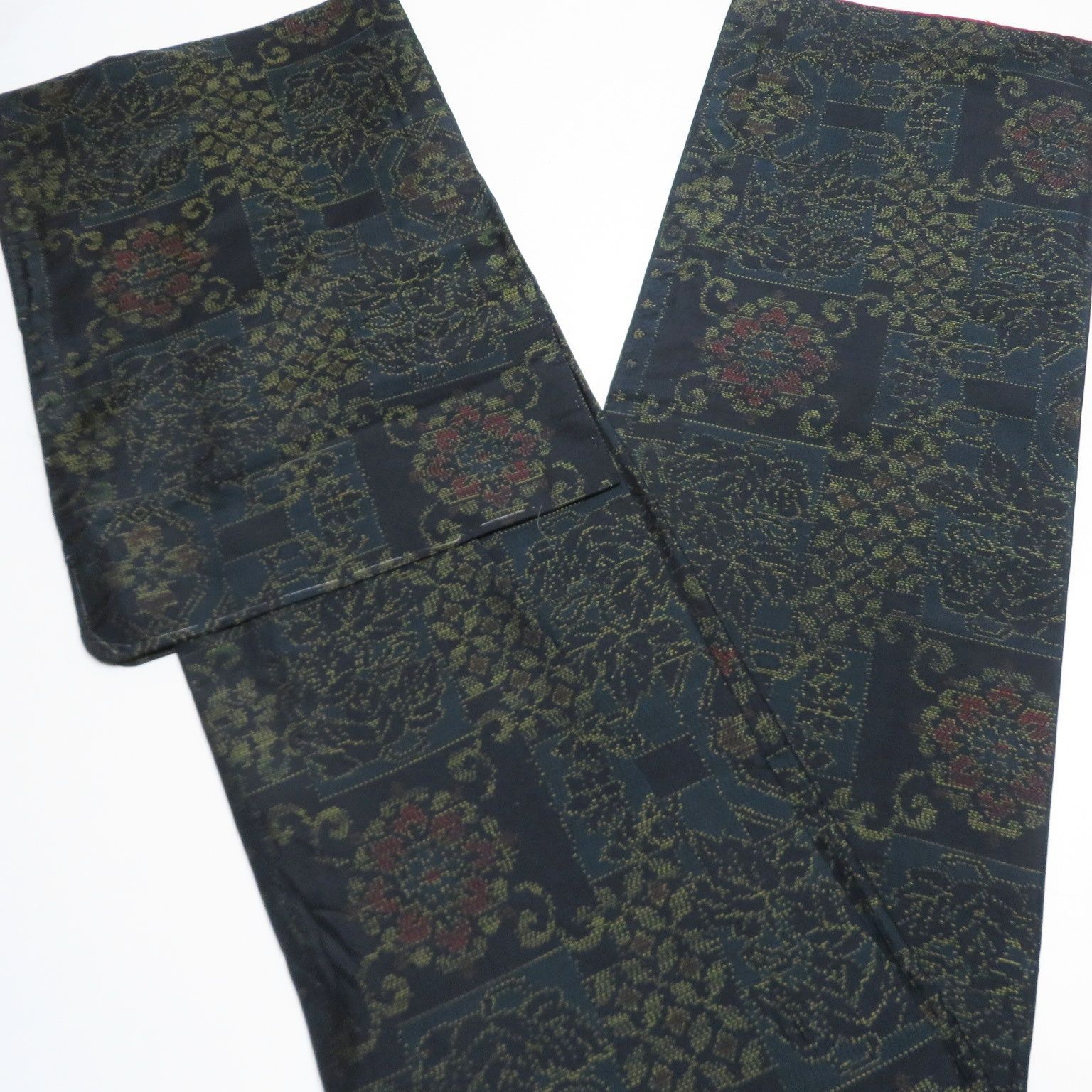 平和屋着物 夏物 アンティーク 大正ロマン 九寸名古屋帯 夏虫草葉文 金銀糸 正絹 DAAY8177cm