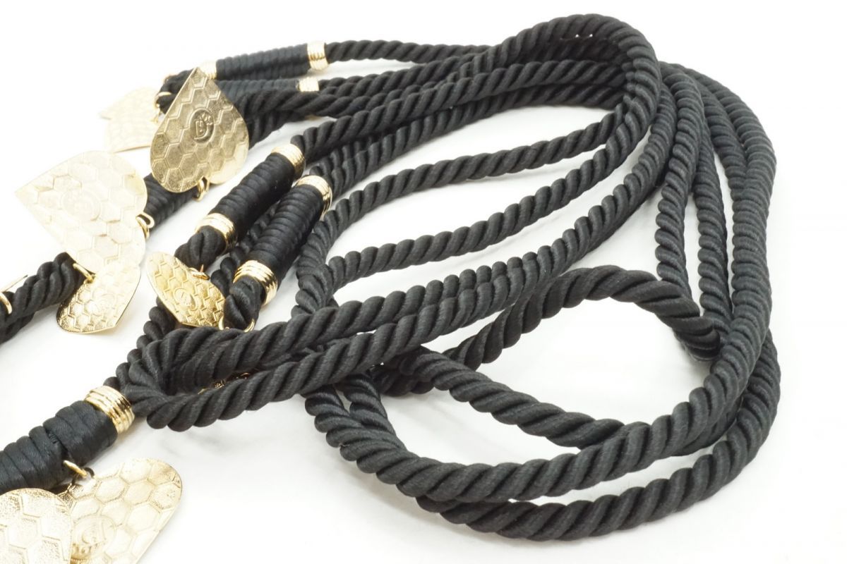 クリスチャン ディオール ベルト ロープ ハート ハニカム ロゴ ウエストマーク ゴールド 黒 ブラック Christian Dior 3611k GLOBALQUALITYIMPORTS_COM