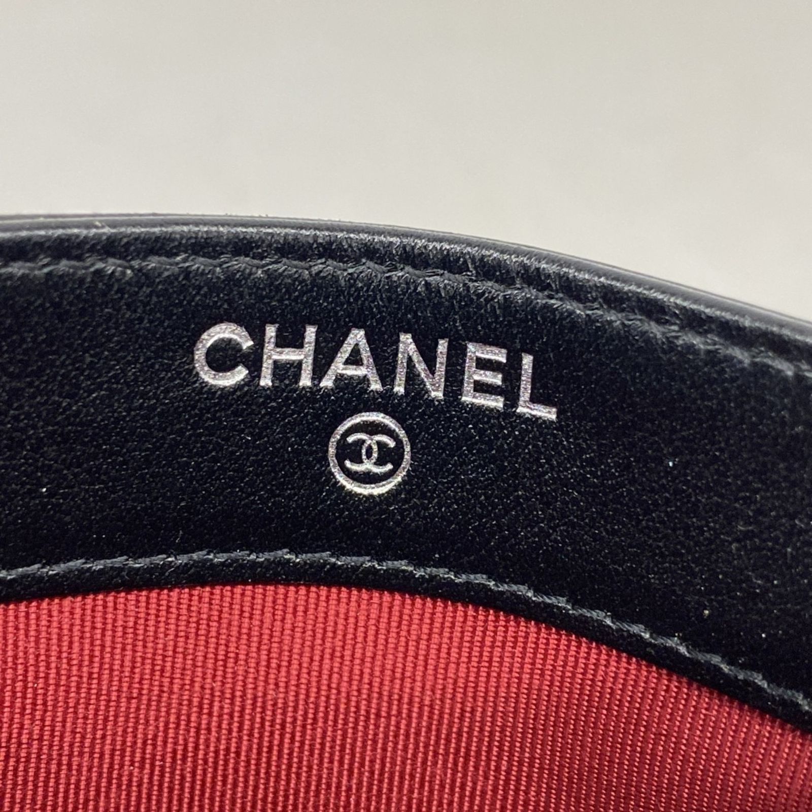 名東 シャネル ラムスキン AO1745 GD金具 ココマーク チェーンストラップ カードケース レディース