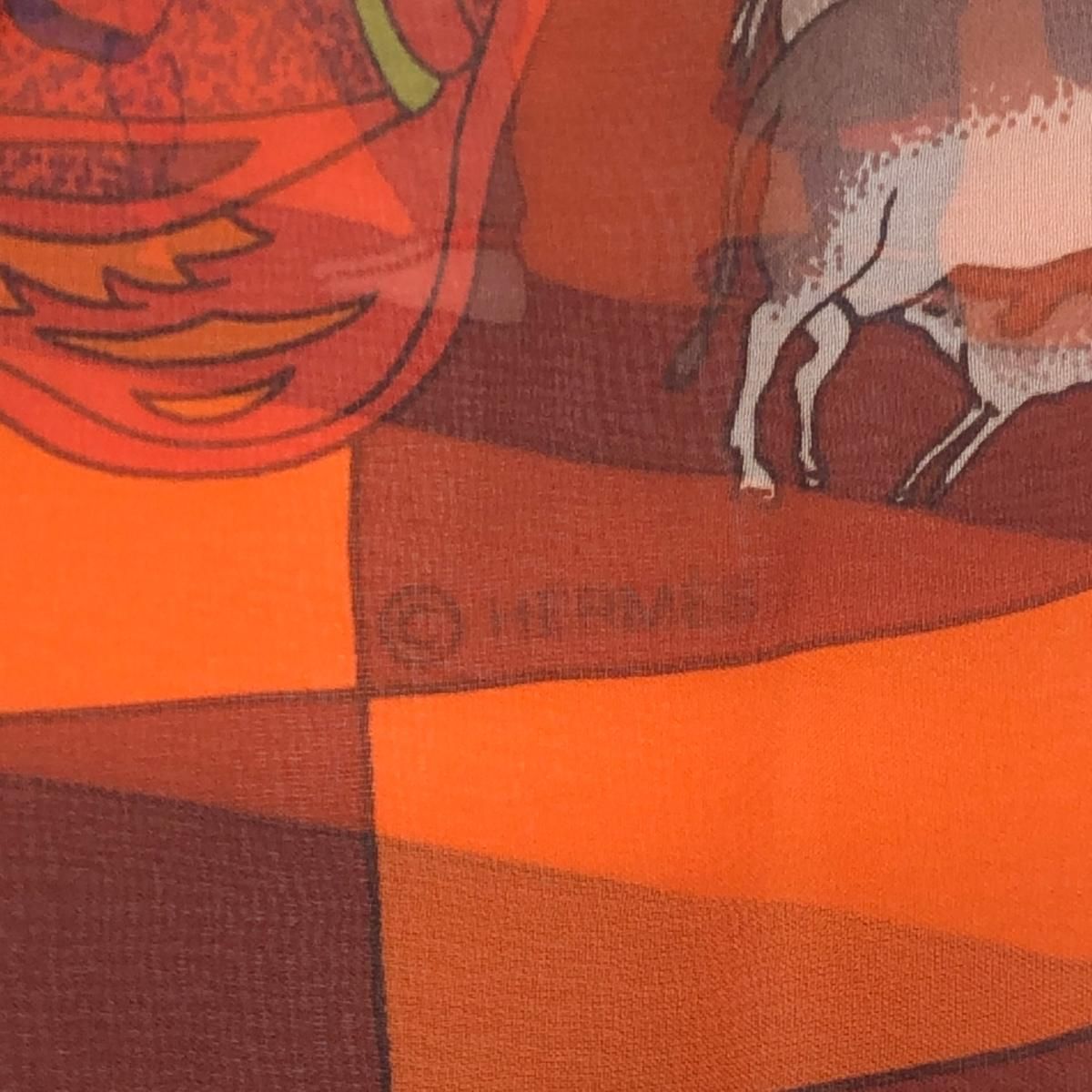 HERMES エルメス スカーフ シースルー 眩惑のインド fantaisies indiennes シルク100% オレンジ レディース 240001161792 GLOBALQUALITYIMPORTS_COM