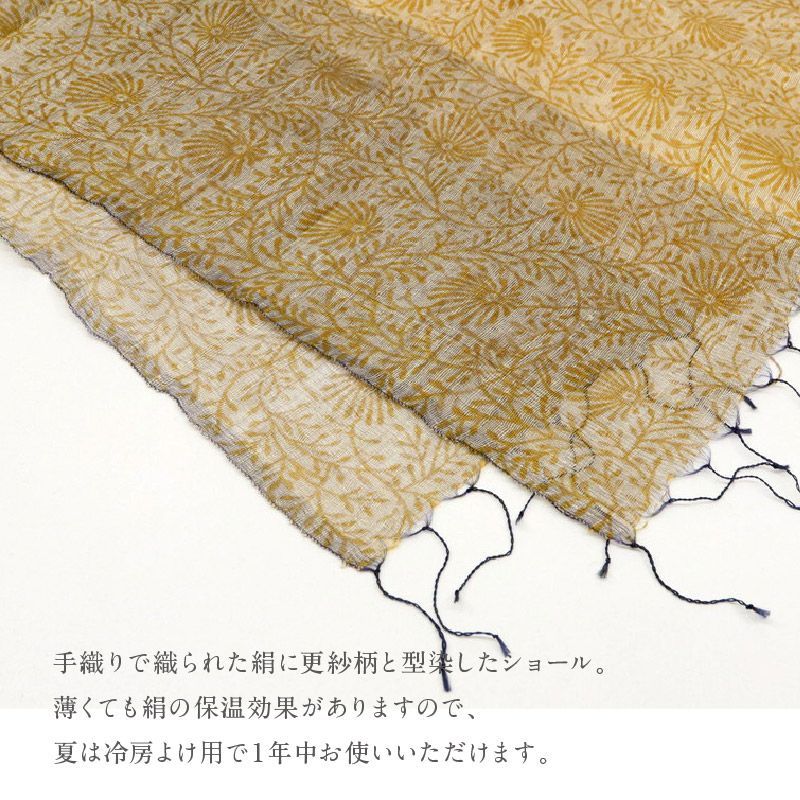 きものギャラリー凛 更紗柄シルクショール イエロー 透け感 薄手 春 夏 ショール ストール インド製 風除け 和装 洋装 着物 小紋 訪問着 着付け 羽織 着物防寒 冬用 着物ショール 道中着 和装小物 プレゼント 誕生日 敬老 GLOBALQUALITYIMPORTS_COM