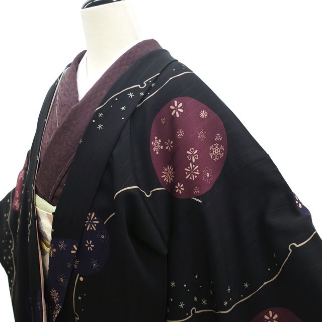 羽織 リサイクル 正絹 袷 手染め 黒 雪輪 雪の結晶 丸文 地紋 おしゃれ カジュアル 春 秋 冬 羽織 仕立て上がり 身丈104 裄丈70 Lサイズ ハオリモノ みやがわ sb16357の検索結果