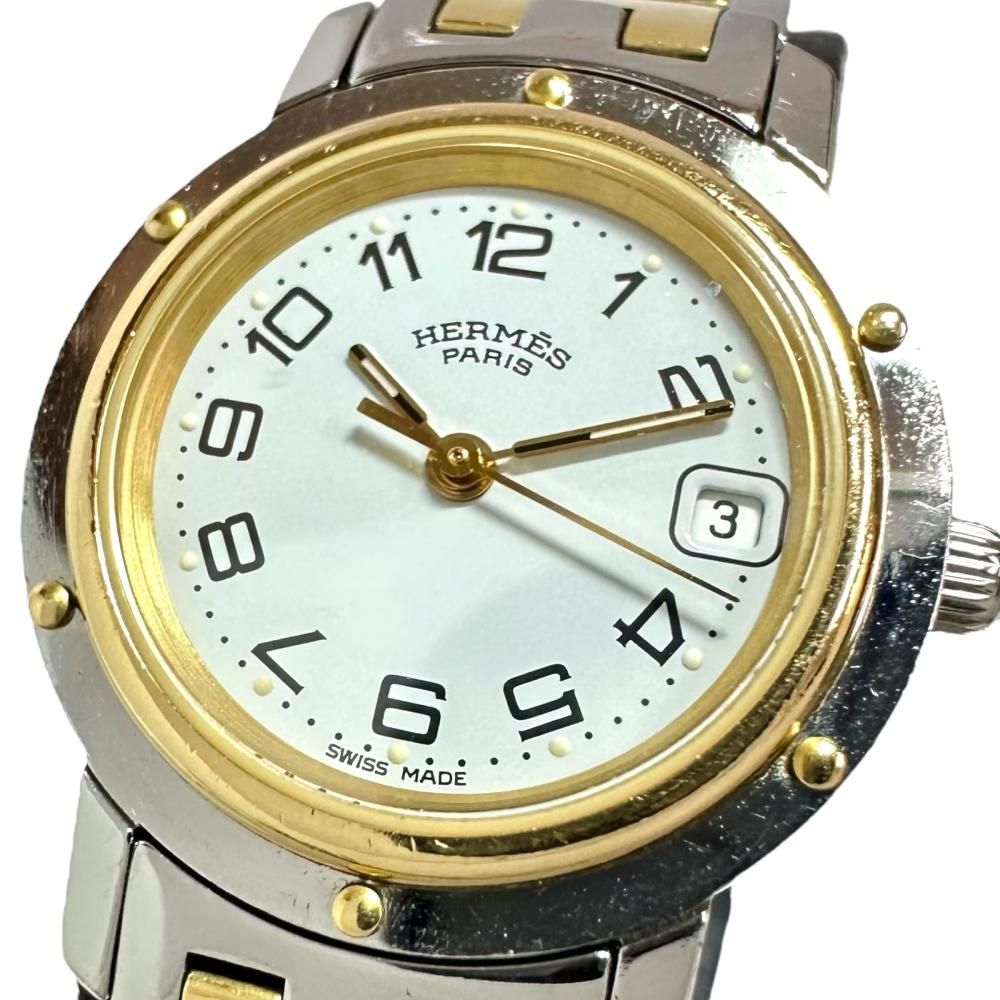 HERMES エルメス クリッパー CL4.220 腕時計 ステンレススチール GP クオーツ ホワイト文字盤 シルバーゴールドコンビ レディース 真子質店 GD GLOBALQUALITYIMPORTS_COM