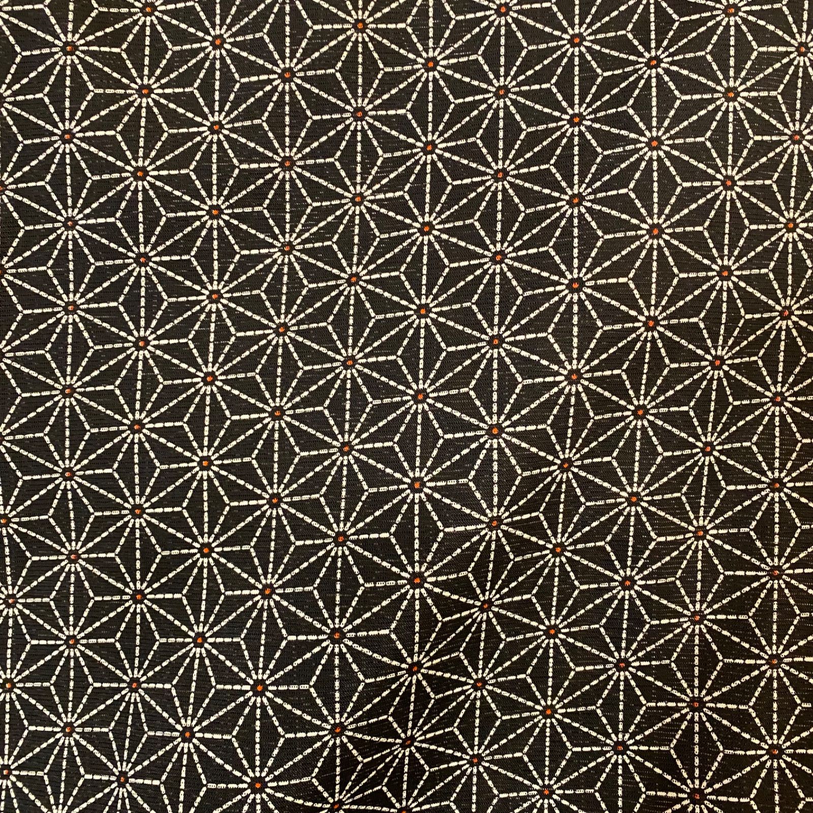 夏着物 2way ガウン 羽織り ドレス ワンピース ハンドメイド 和洋折衷 洗える 化繊 リメイク 帯サッシュベルト レトロ 古着 墨黒 チャコールの地に 生成りの点線で描いた麻の葉 KD-63 GLOBALQUALITYIMPORTS_COM
