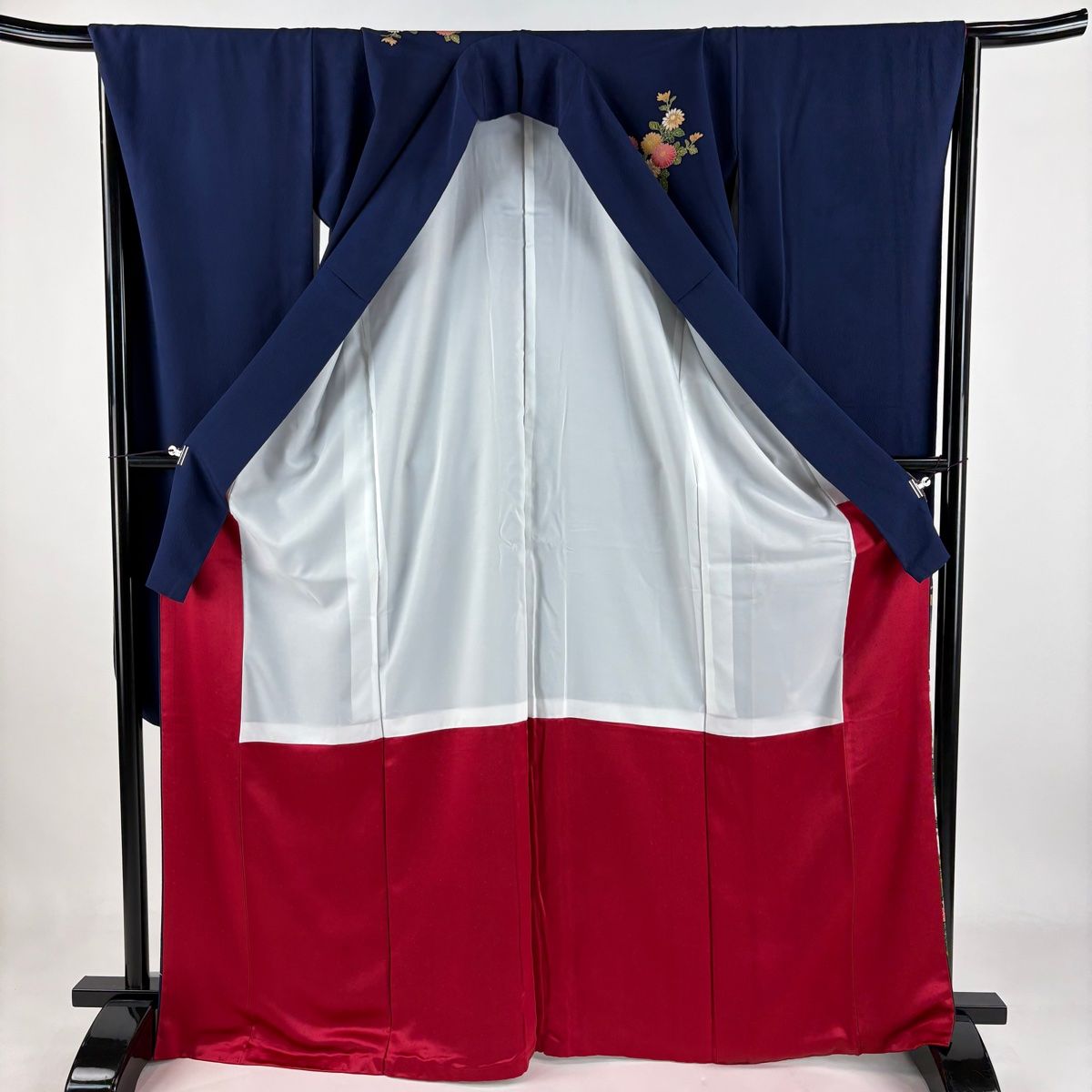 振袖 身丈158.5cm 裄丈64.5cm M 袷 菊 幔幕 刺繍 金彩 紺色 正絹 秀品