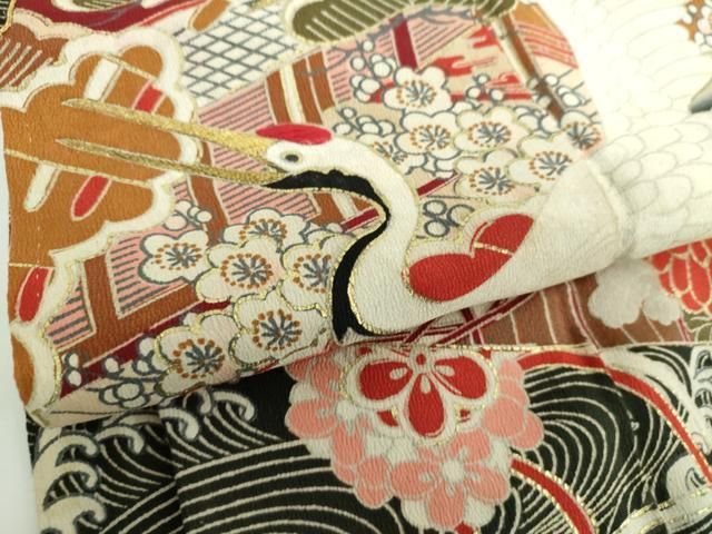 平和屋着物 アンティーク 大正ロマン 黒留袖 駒刺繍 立波御所車花文 金彩 正絹 DAAX4480psの検索結果
