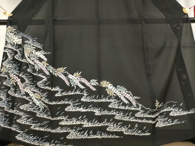 平和屋着物 夏物 黒留袖 絽 流水枝花文 正絹 AABB8652stの検索結果