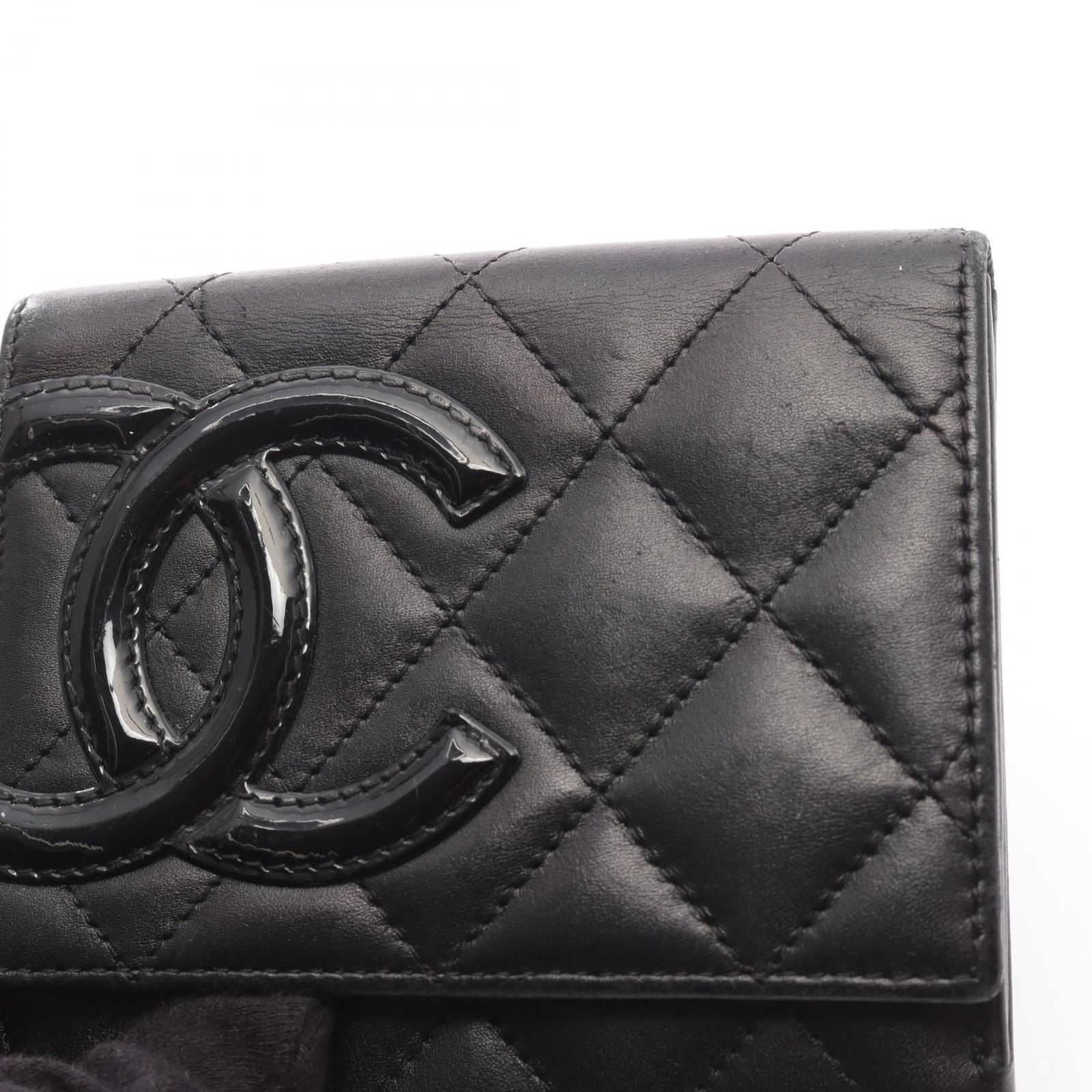 シャネル CHANEL Wホック財布 カンボンライン ベージュ ベージュエナメル レザー パテントレザー カンボン Wホック財布 レディース Used B GLOBALQUALITYIMPORTS_COM