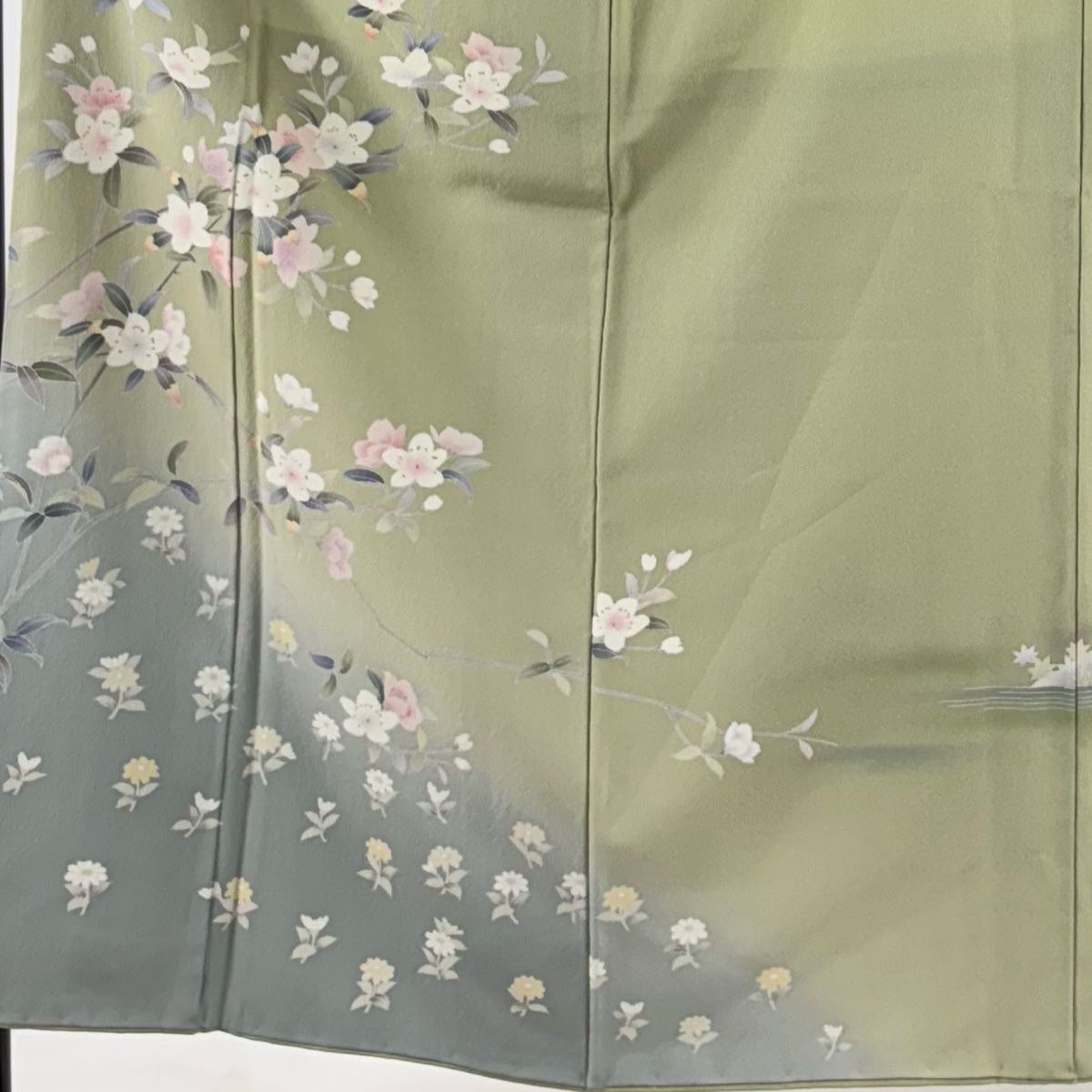訪問着 身丈154cm 裄丈62cm S 袷 桜 草花 ぼかし 抹茶色 正絹 秀品の検索結果
