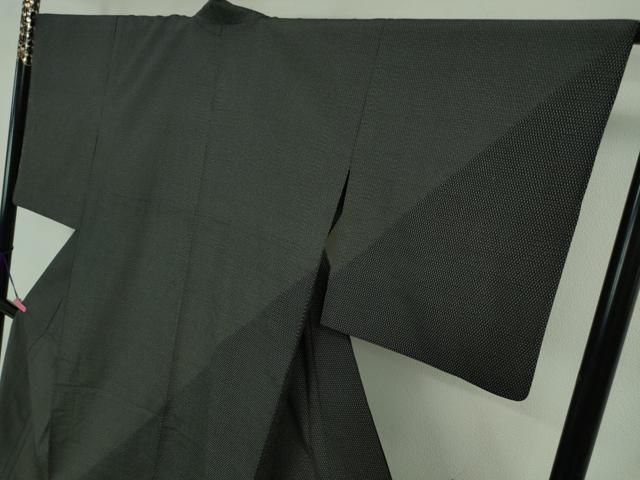 平和屋着物 上 お召 単衣 よろけ市松地紋 黒地 DZAA9837kh5