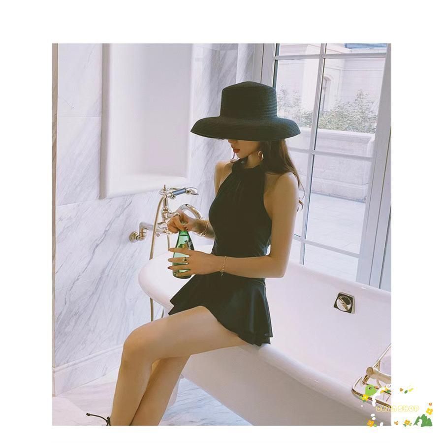 ドット柄 シースルーセクシーワンピース水着 黒 体型カバー 大きいサイズ お腹を隠して痩せる 水着 韓国ファッション