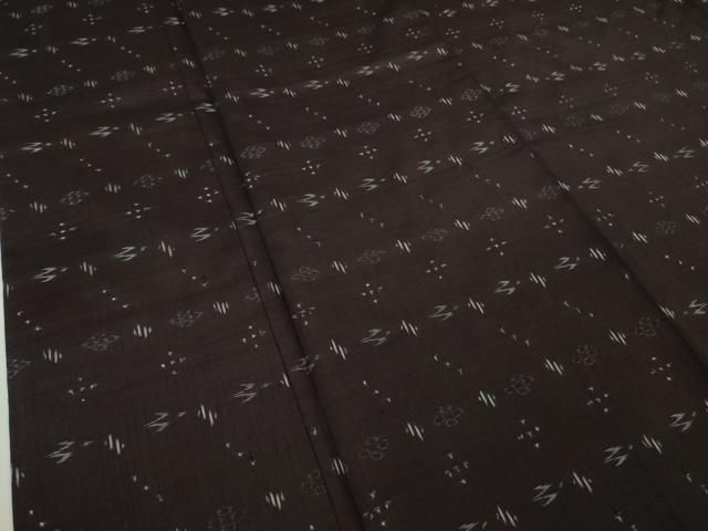 大島紬 身丈160.5cm 裄丈64cm M 袷 純泥染 証紙 草花 焦茶色 正絹