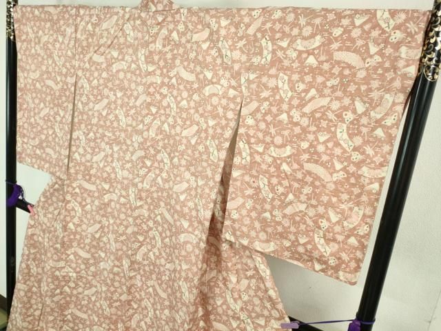 平和屋本店 上 紬 型染 舞蝶地紙花文 宍色地 ロング丈 DZAB0807kh5の検索結果