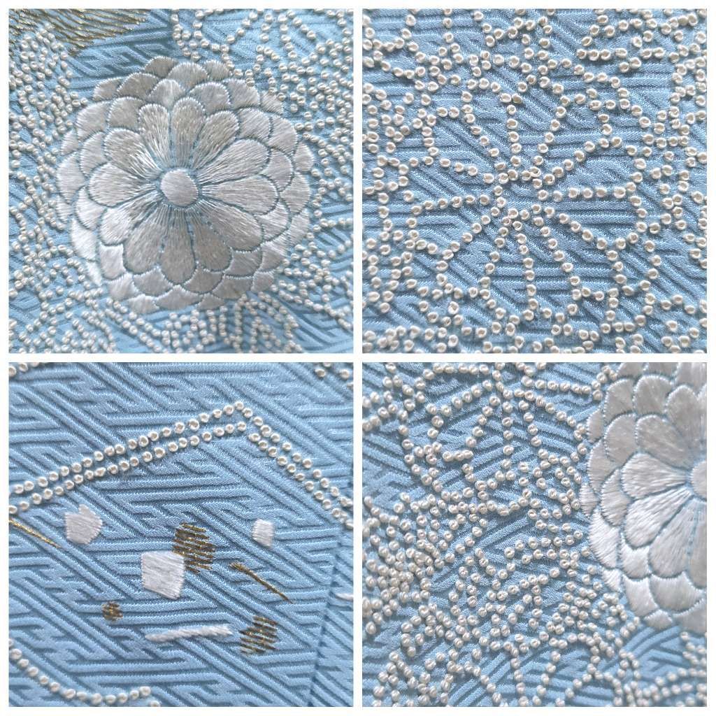 B 着物くつろぎ 松皮に菊花模様 金糸 刺繍 萩 のりチラシ 松葉 紗綾形 袷 正絹 色留袖 襦袢セット 着物の検索結果