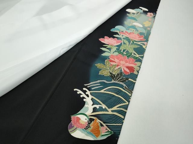 平和屋着物 創業460年 千總 黒留袖 駒刺繍 流水枝花文 金彩 正絹 AABA8795zg