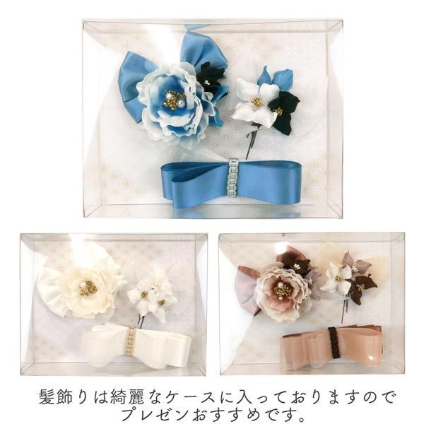 振袖用 髪飾り 7点セット wk-227-1 リボン 花飾り サテン オーガンジー ヘア ブルー 青 ブラウン ホワイト 白 三つ編み 成人式 振袖 浴衣 七五三 卒業式 結婚式 パーティー 沖縄県 離島は 京都うさぎ堂 GLOBALQUALITYIMPORTS_COM
