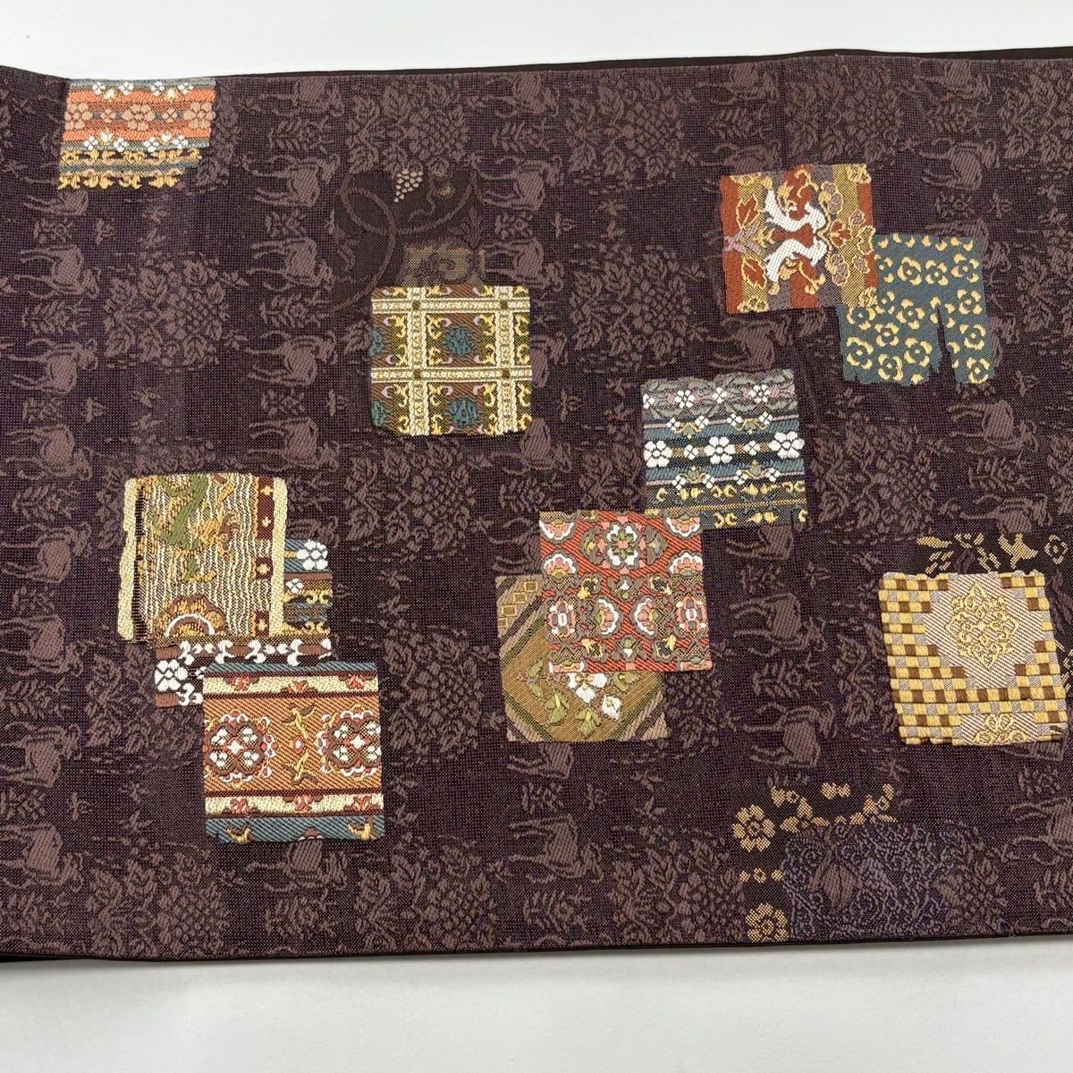 袋帯 秀品 色紙 動物 箔 金糸 茶紫 六通 正絹の検索結果