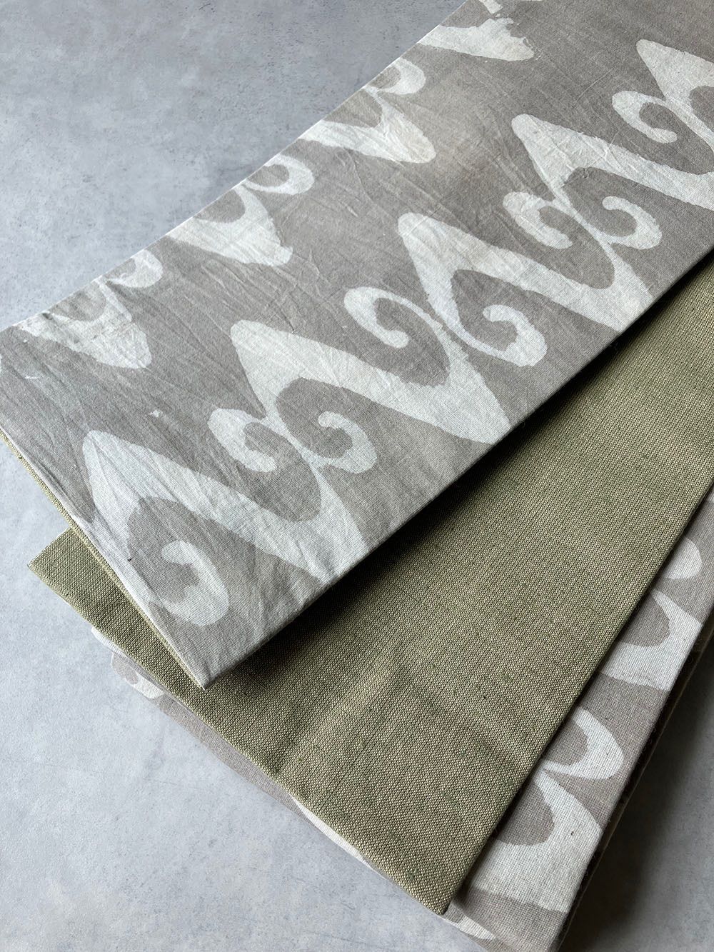 • 波模様グレージュ ハンドブロックプリント×遠州木綿