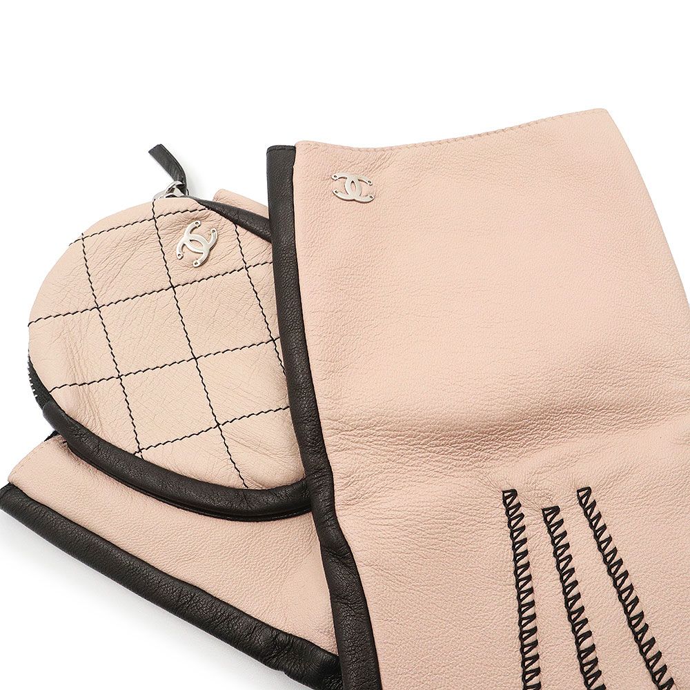 シャネル ココマーク マトラッセ ジップポケット付き フィンガーレス 手袋 グローブ #8 ラムスキン レザー バイ ピンクベージュ ブラック シルバー金具 AA0718 CHANELの検索結果