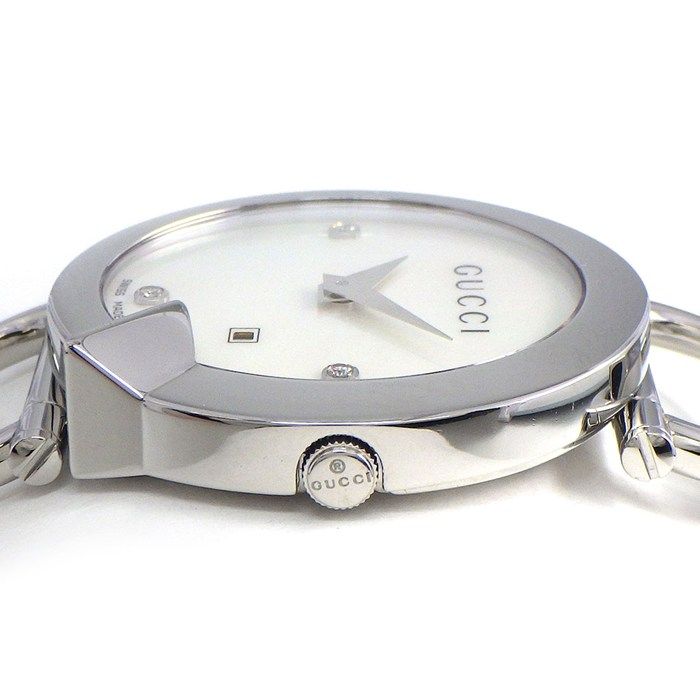 グッチ GUCCI 腕時計 オキド 122.5 YA122504 ホースビット デイト 3ポイント ダイヤインデックス ギョーシェ ヴァーグ ホワイトシェル文字盤 SS クオーツアナログ GLOBALQUALITYIMPORTS_COM