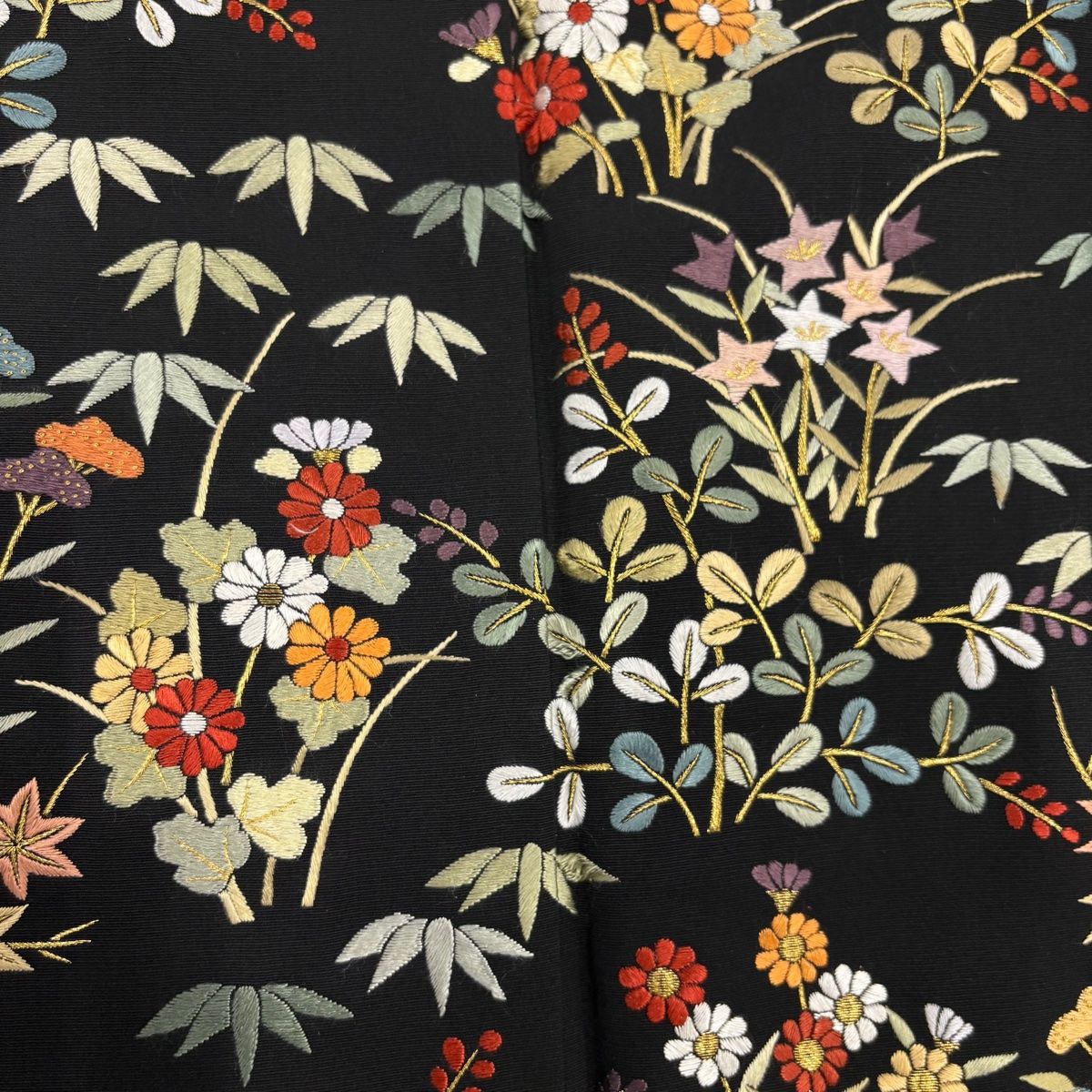 黒留袖 身丈157cm 裄丈63.5cm S 袷 秋草 笹 刺繍 金糸 黒 正絹 秀品の検索結果