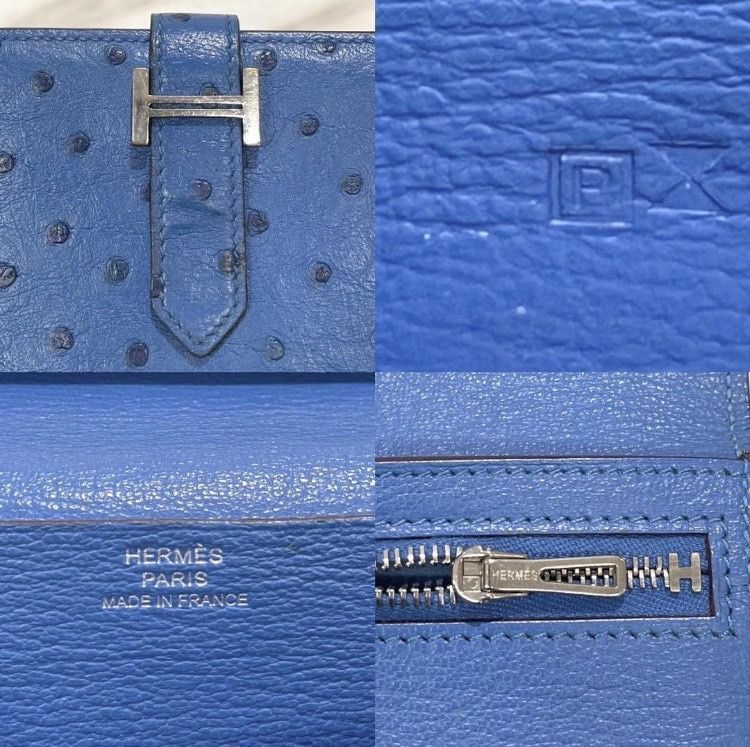 エルメス 長財布 ベアンスフレ オーストリッチ 青 P刻印の検索結果