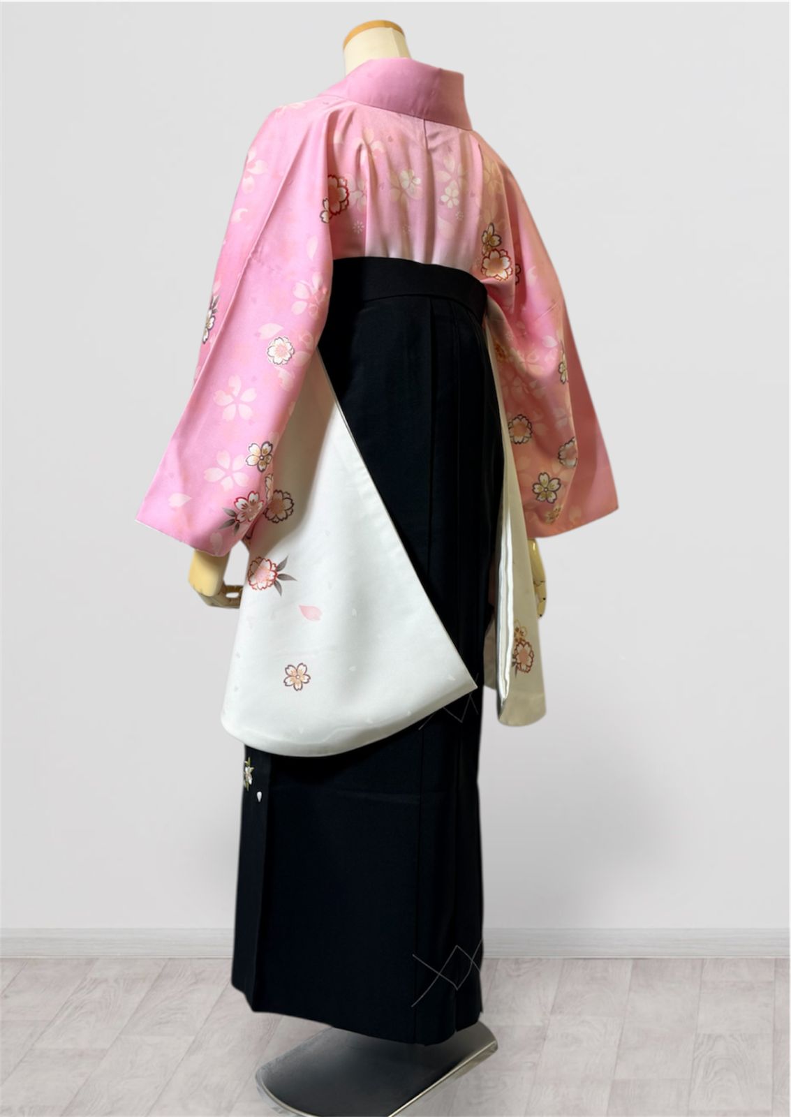 着物 袴 帯 3点セット 卒業袴 着物 袴 帯 二尺袖 仕立て上がり 3点セット 白 ピンク 黒 桜 刺繍 95-10 GLOBALQUALITYIMPORTS_COM