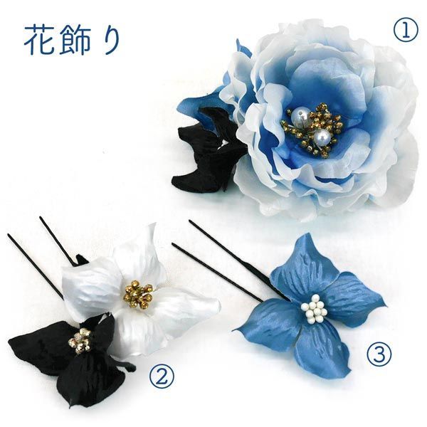 振袖用 髪飾り 7点セット wk-227-1 リボン 花飾り サテン オーガンジー ヘア ブルー 青 ブラウン ホワイト 白 三つ編み 成人式 振袖 浴衣 七五三 卒業式 結婚式 パーティー 沖縄県 離島は 京都うさぎ堂 GLOBALQUALITYIMPORTS_COM