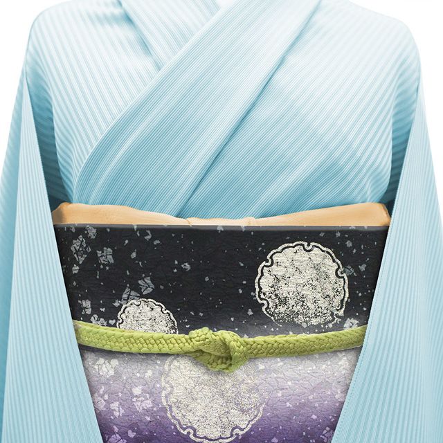 新古品 袋帯 正絹 全通 染め帯 染帯 手染め 銀彩加工 紫 黒 ぼかし染 雪輪 箔散らし カジュアル 春 秋 冬 作家物のようなデザイン 袋帯 仕立て上がり みやがわ sb54632 GLOBALQUALITYIMPORTS_COM