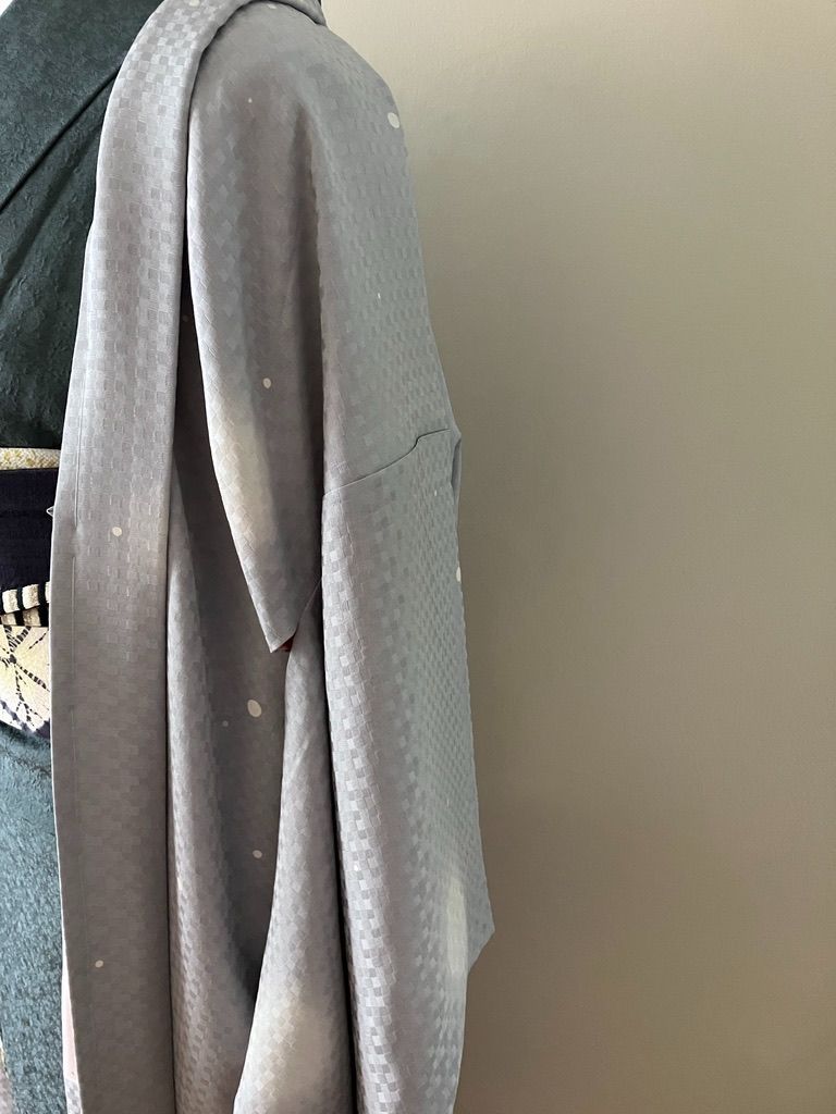市松地紋×蛍ぼかし 長羽織 仕立て替え グレー系 ロング丈 C030の検索結果