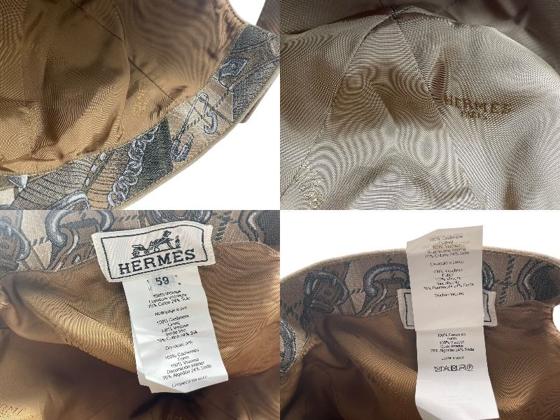 HERMES エルメス ライリー キャップ セリエボタン Hロゴ刺繍 ベージュ カシミヤ コットン シルク 59 634363N 4b007665 GLOBALQUALITYIMPORTS_COM