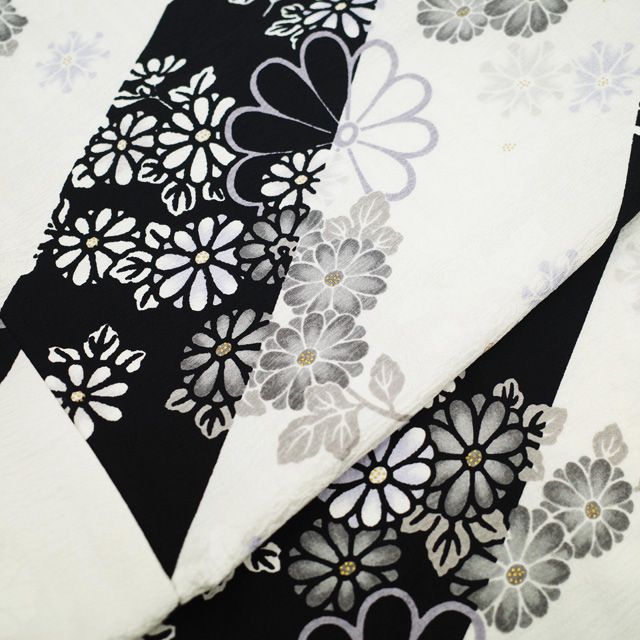 羽織 リサイクル 正絹 袷 金彩加工 白 黒 斜め縞 菊 花 カジュアル 日本和装扱い 春 秋 冬 羽織 パールトーン加工済み 仕立て上がり 身丈110 裄丈71 L~TLサイズ トールサイズ ハオリモノ みやがわ sb16356の検索結果